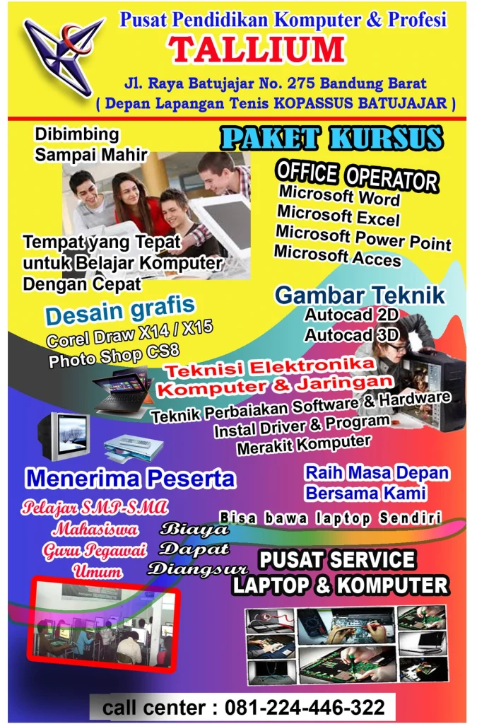 LKP & LPK Kami terbukti mampu mencetak operator yang profesional bidang aplikasi komputer yang tersebar di seluruh Indonesia. Metode pembelajaran dirancang agar mudah dipahami, efektif, praktis, cepat dikuasai, dan telah melahirkan banyak alumni sukseS